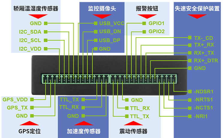 在整套电梯物联网管理方案中,将GPS定位传感器、轿厢温度传感器、加速度传感器、报警装置接入球速体育R100;利用R100的边缘计算能力,对采集到的数据进行运算和整形,迅速识别并响应异常运行状态;最终通过无限局域网络或蜂窝数据网络上发至管理平台,完成电梯的物联网接入。