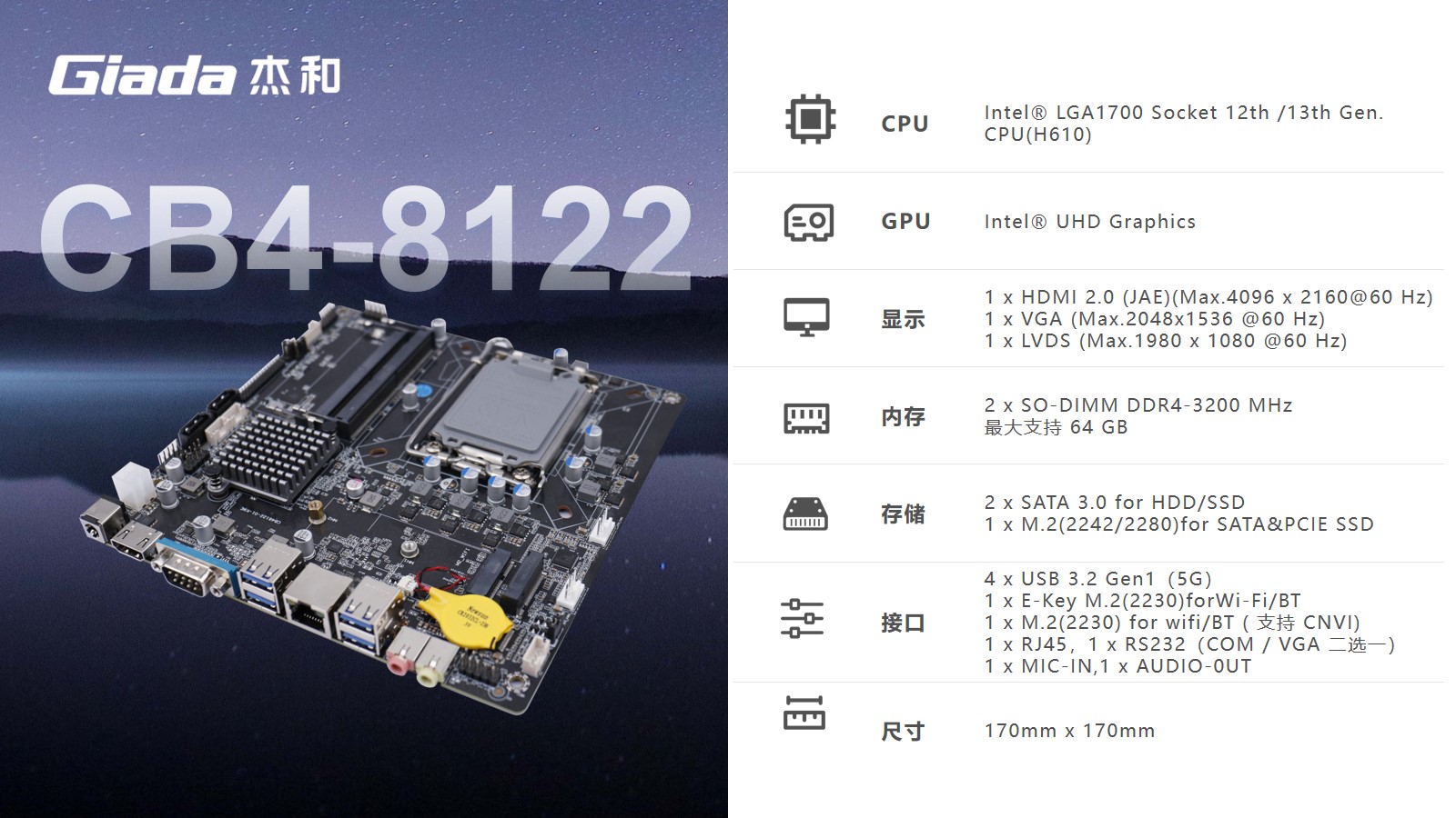 针对客户的多任务处理需求,主板选用2个DDR4 SO-DIMM插槽,支持高达64GB的内存容量,同时配置支持PCIe 3.0通道的M.2接口以及2 x SATA接口,用于连接硬盘。
