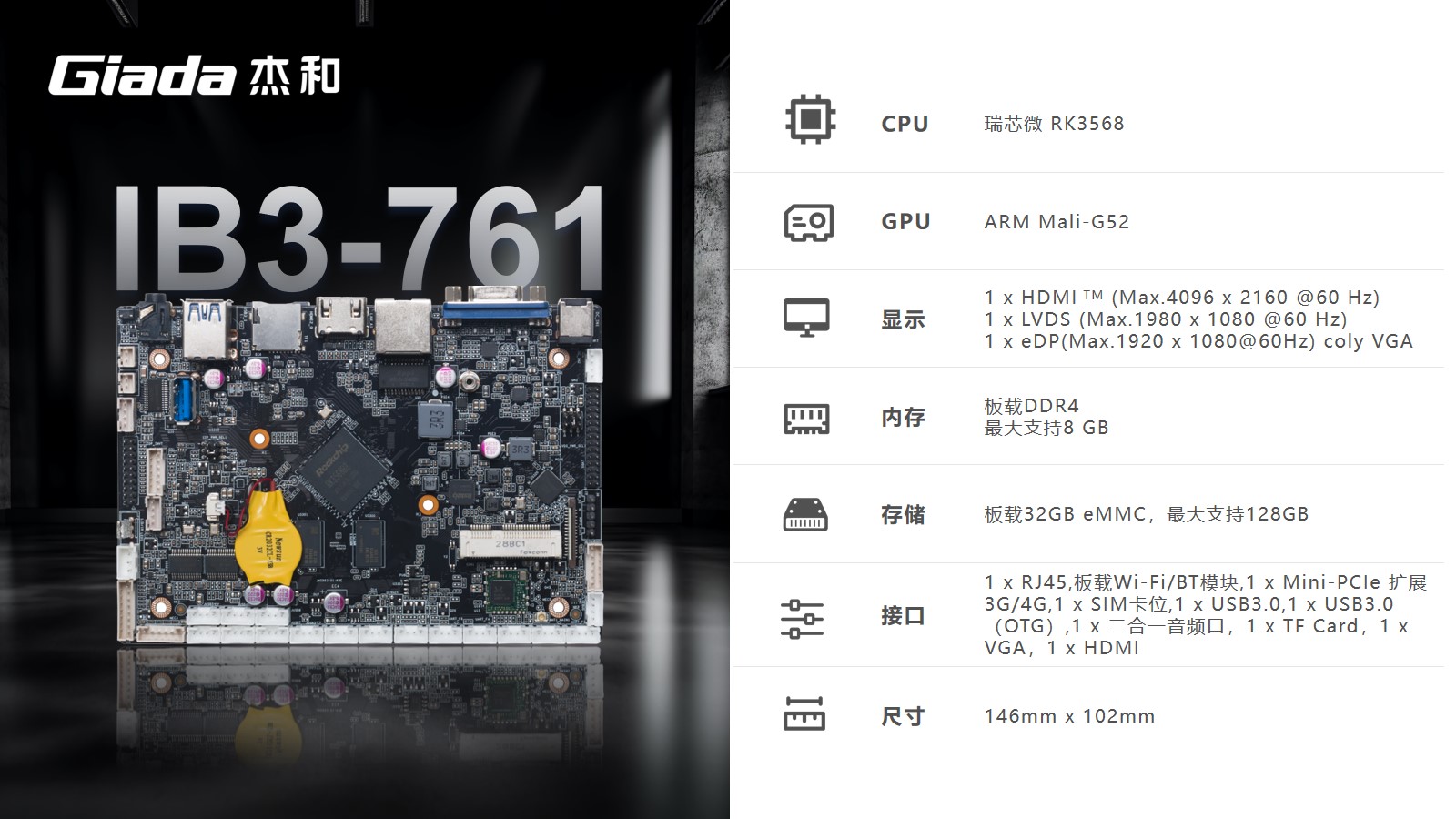 本次球速体育科技高交会展示的工业计算机主板IB3-771、IB3-761,搭载了Rockship的芯片,可应用于工业自动化、物联网解决方案和汽车系统,已经被多数客户部署在工厂车间以及物联网生态系统的智能设备中。