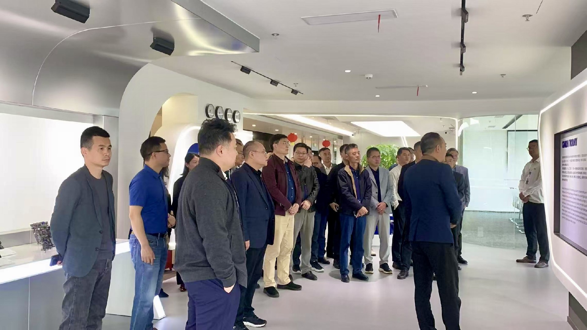 作为东道主,球速体育科技带领与会嘉宾参观数字化展厅,重点呈现企业历程、AI算力产品以及一系列自主研发成果。展厅内多项专利技术及行业解决方案,直观展现了企业在智能制造、智慧零售等领域的技术沉淀,为后续研讨提供了实践参考。