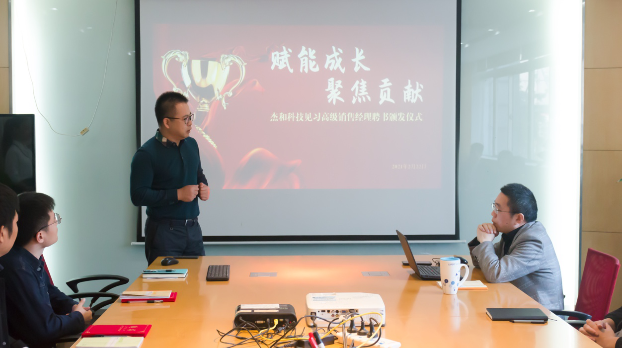 紧接着是聘书颁发环节。公司总经理林总为国际销售中心三名新任见习高级销售经理颁发了公司聘书。三位同事表示:“非常感谢公司给予的职业发展机会,同时也会非常珍惜公司为自己制定的专项培养计划,全力以赴的进行相关项目的学习,争取成功实现转身,在工作中努力奋斗,不断总结,带领团队赢得胜利!”