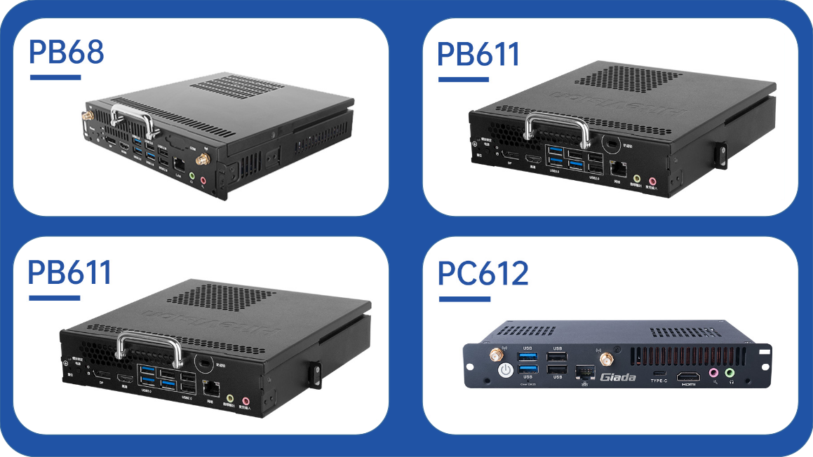 PC612拥有4个USB接口及1个Type-C3.2 Gen2接口,1 x M.2(2242/2280)支持速度高达PCIe4.0 x4的SSD,1 x M.2 (2230) 扩展 Wi-Fi/BT模块,支持WiFi6E,1 x RJ45等。作为标准的OPS产品PC612,凭借其强大的性能处理能力与丰富的扩展接口,在商业领域与教育行业中都能大展身手。