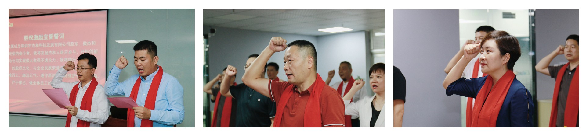在签约仪式的最后时刻,董事长林坤杰先生与全体股东合伙人共同宣读誓词:我自愿成为深圳市球速体育科技发展有限公司股东,做球速体育科技公司光荣的奋斗者,我将发扬球速体育人艰苦奋斗、开拓创新的精神,为公司实现做大做强不遗余力;我将践行“共创、共担、共享”的股权文化,与企业发展荣辱与共;在工作中主动担当、迎难而上,廉洁正气、遵守原则,时刻维护公司的利益,以身作则、严于律己,做全体员工的楷模!球速体育齐心协力,斗志昂扬,信心满满!