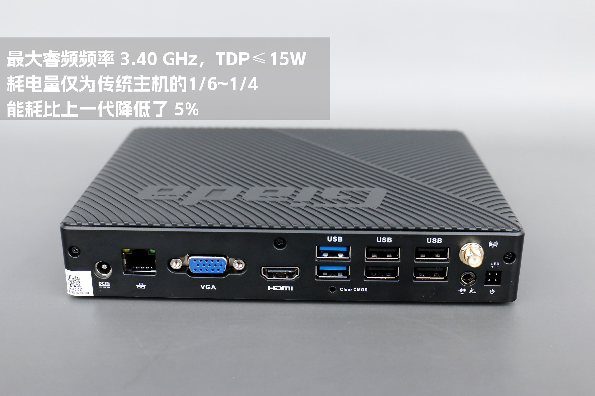 2、最大睿频频率 3.40 GHz,TDP≤15W,耗电量仅为传统主机的1/6~1/4,能耗比上一代降低了 5%;