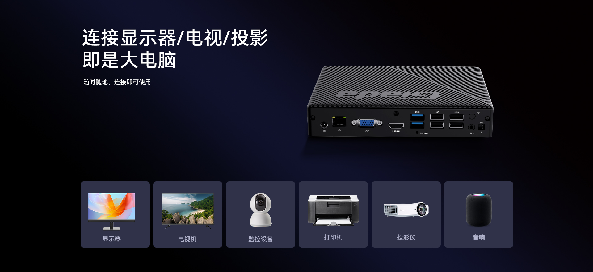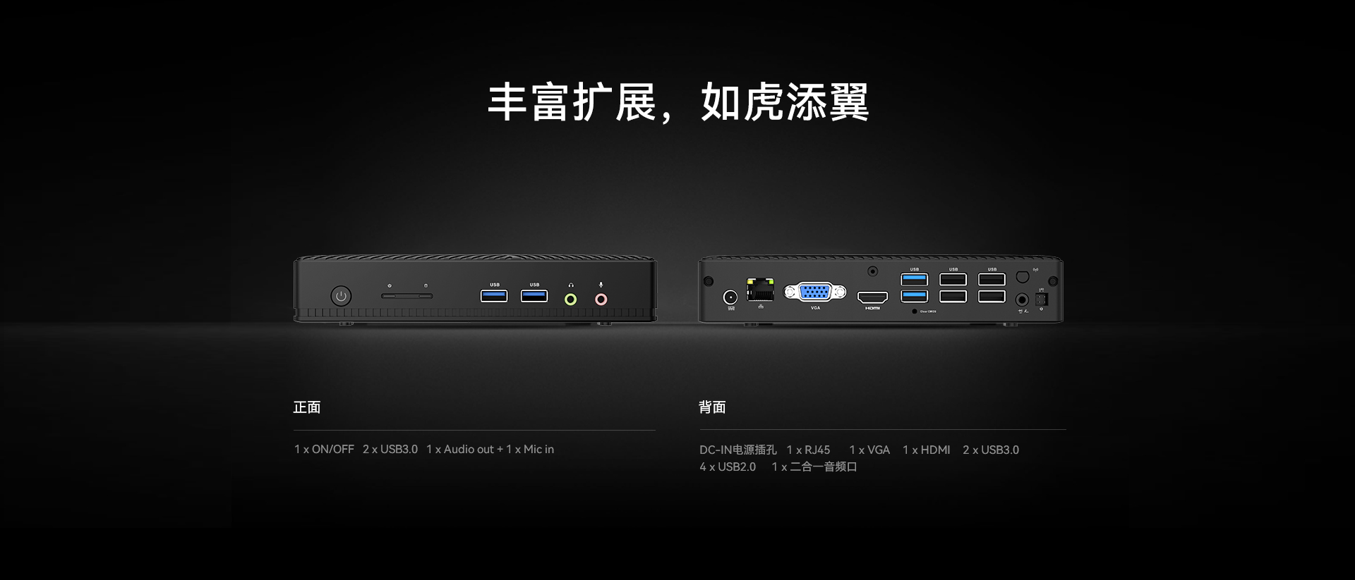 1 x HDMI,1xVGA双视频接口输出